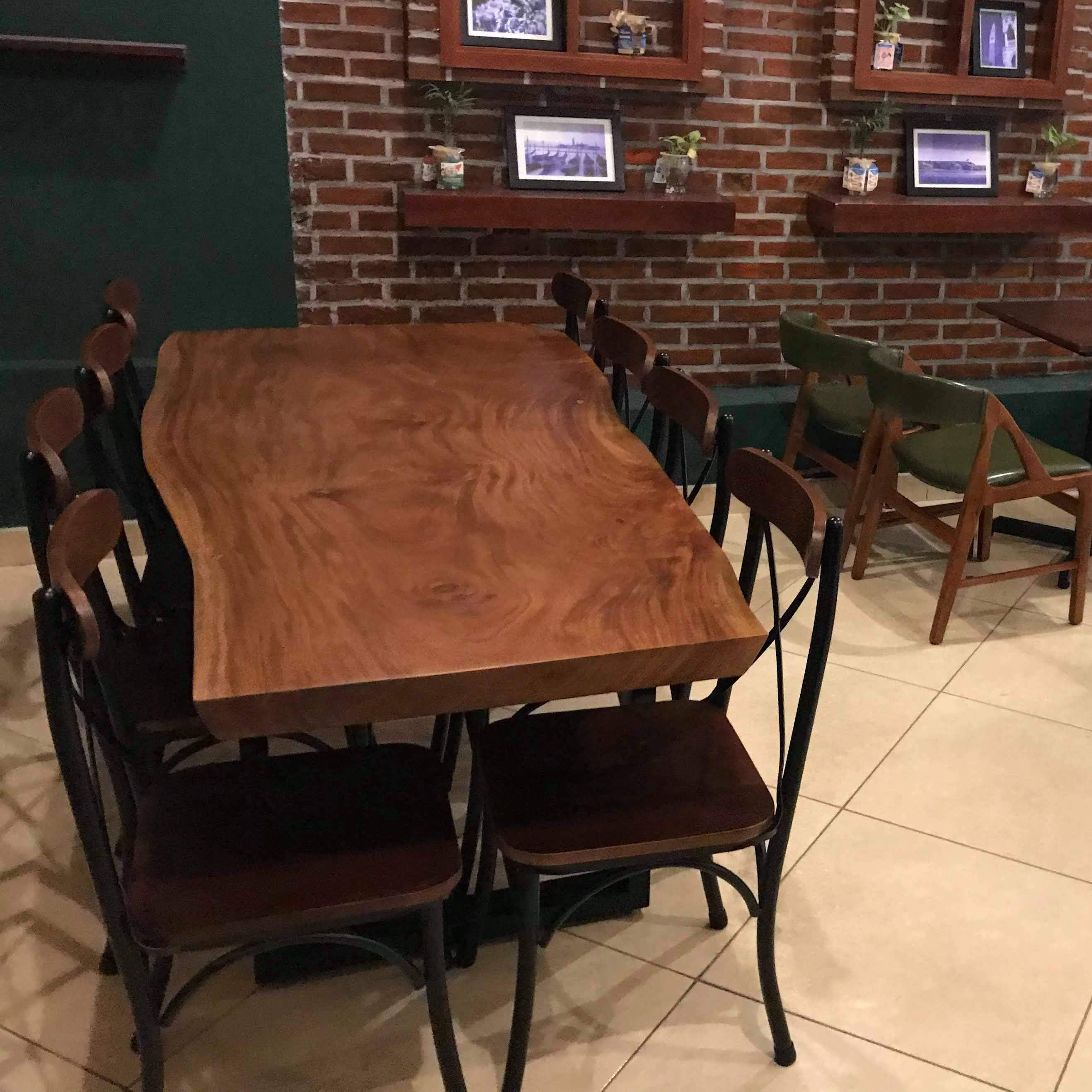 Với mặt bàn là gỗ nguyên tấm nên trong rất tự nhiên. Và chân bàn khung sắt lớn dạng chữ U đủ để nâng đỡ và đảm bảo kết cấu sản phẩm.