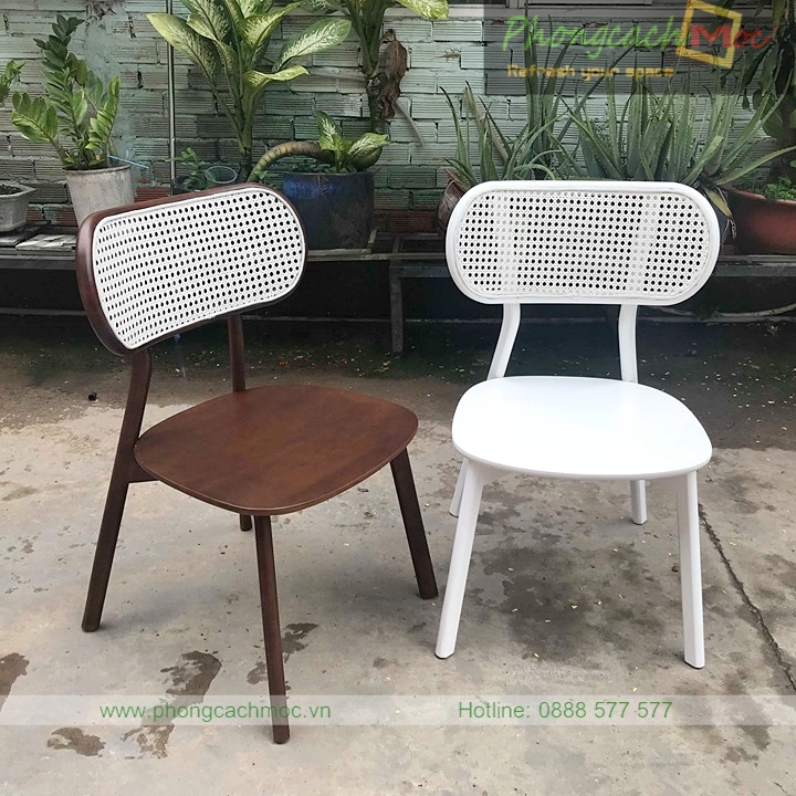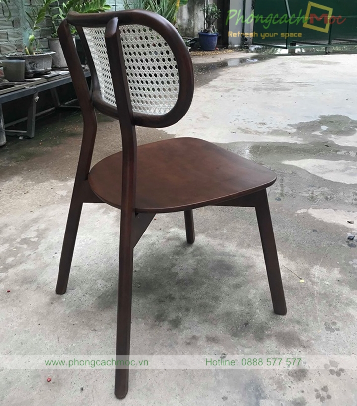 - Vật liệu và màu sắc: Nằm trong bộ sưu tập bàn ghế cafe sử dụng vật liệu mới: Tấm mây đan mắt cáo. Vật liệu này cùng với gỗ chính là sự kết hợp hoàn hảo. Khung gỗ được Phong Cách Mộc sản xuất bằng gỗ cao su hoặc tần bì.