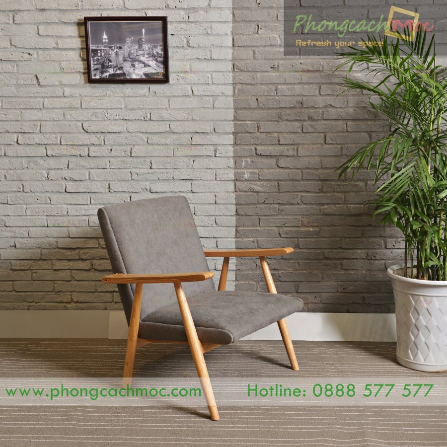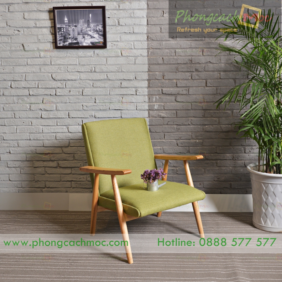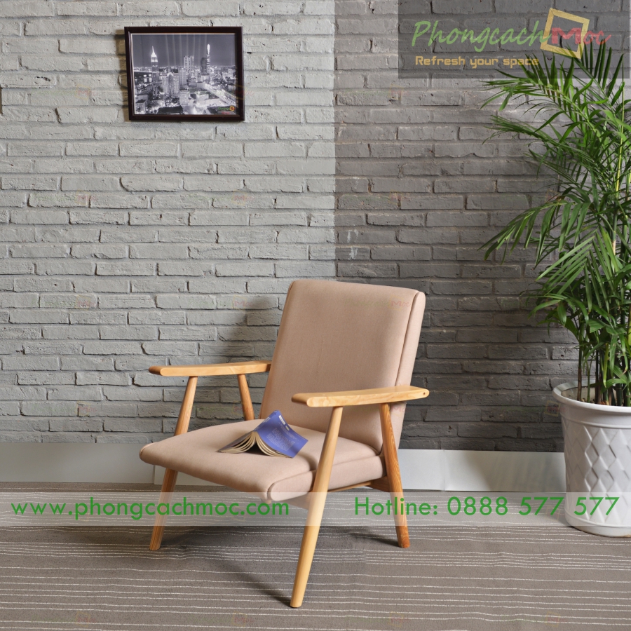 - Chất liệu: Phần khung gỗ của chiếc ghế sofa cafe được yêu thích nhất Phong Cách Mộc được làm bằng gỗ tần bì. Phần nệm bọc vải.