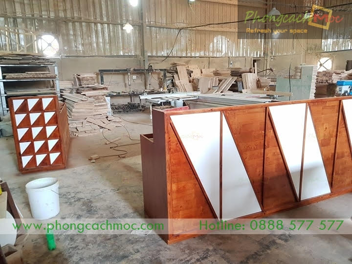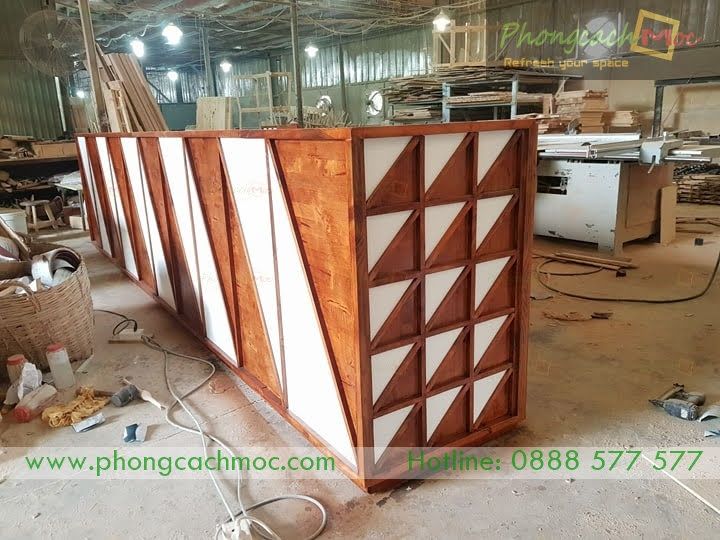 Quầy gỗ MR123 tại xưởng sản xuất của Phong Cách Mộc