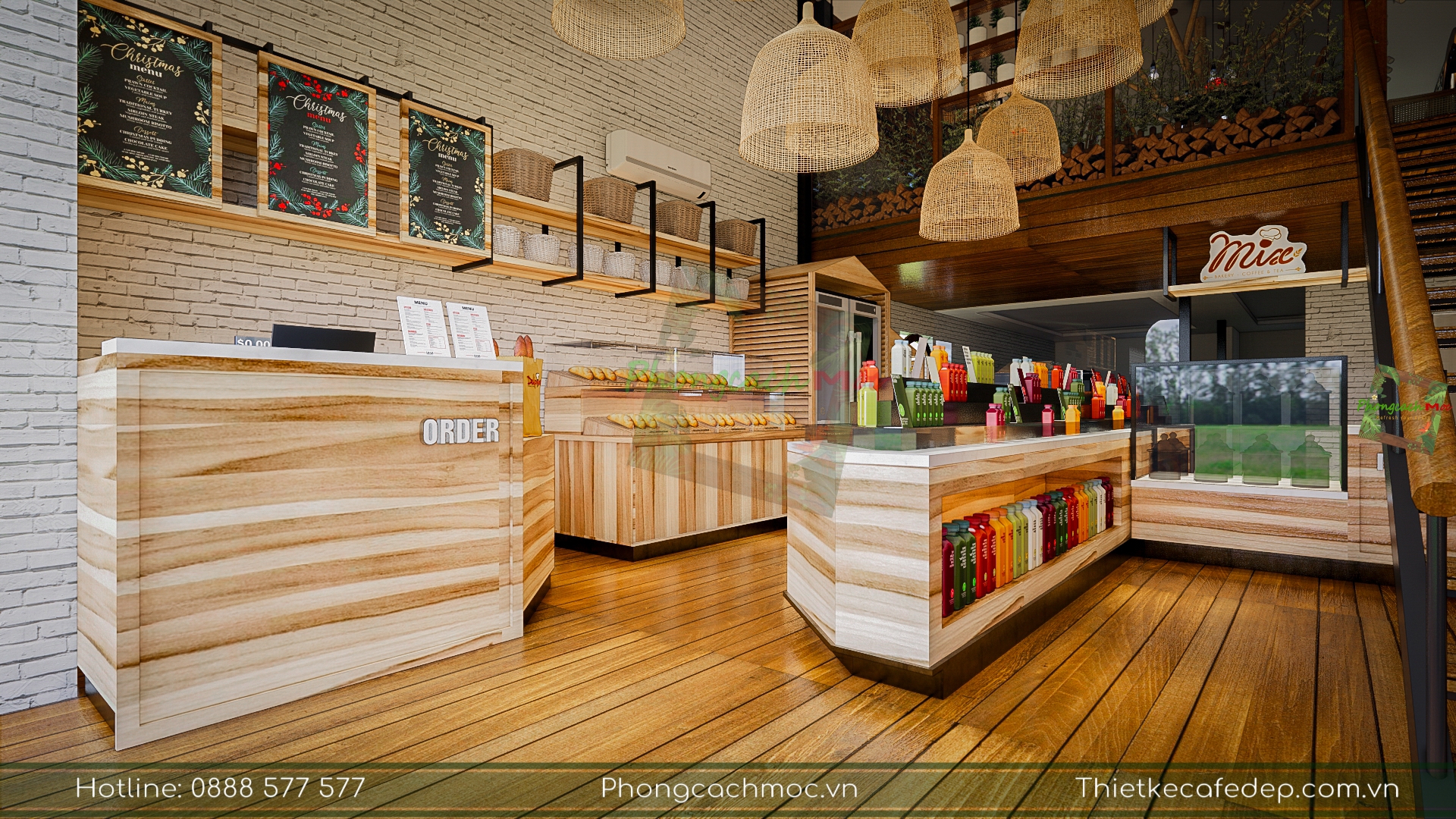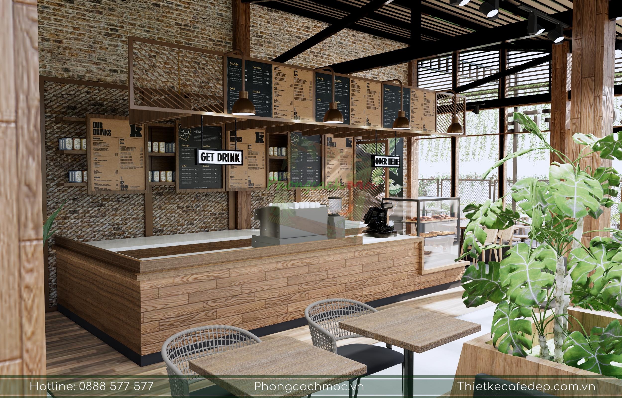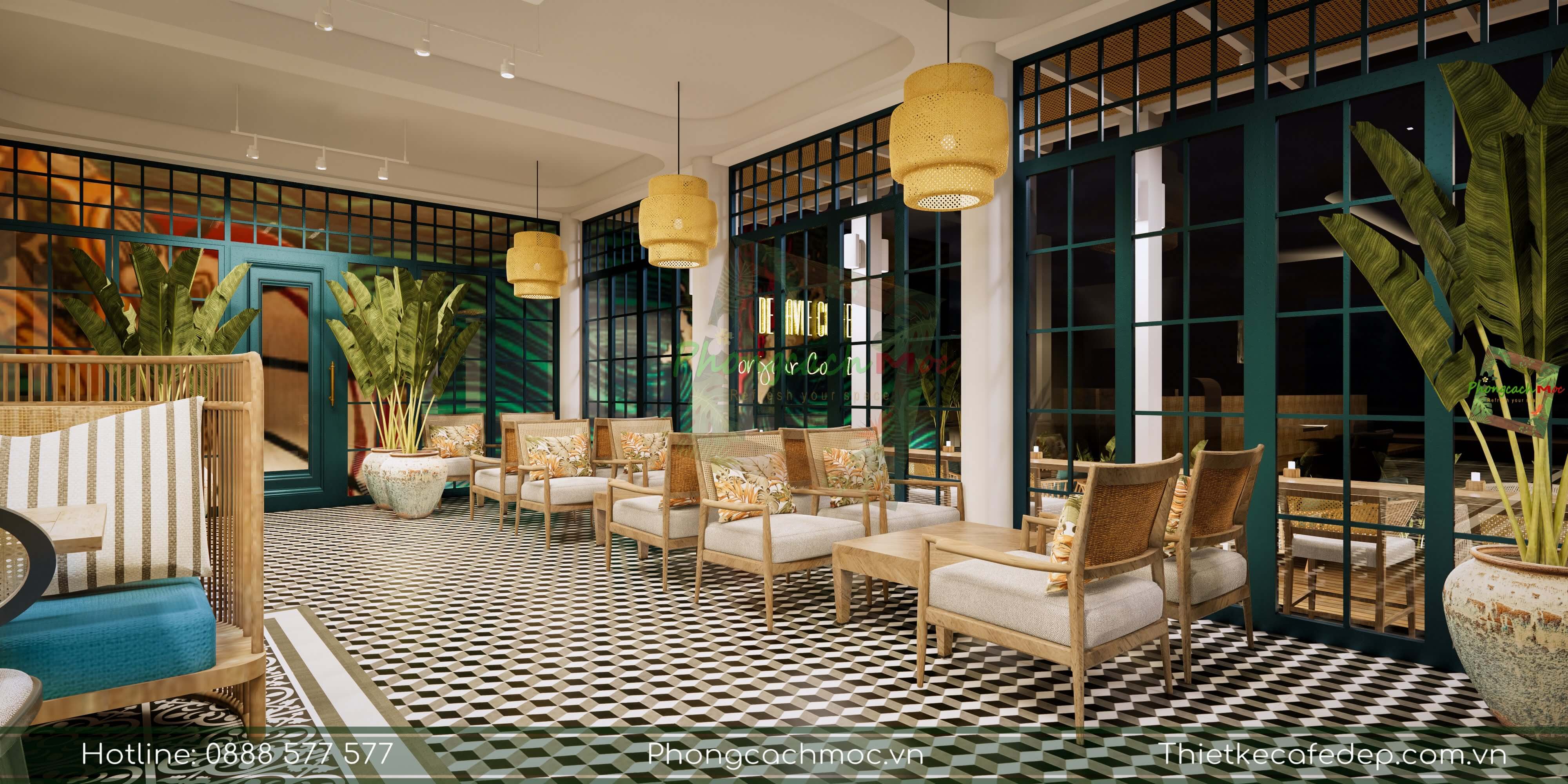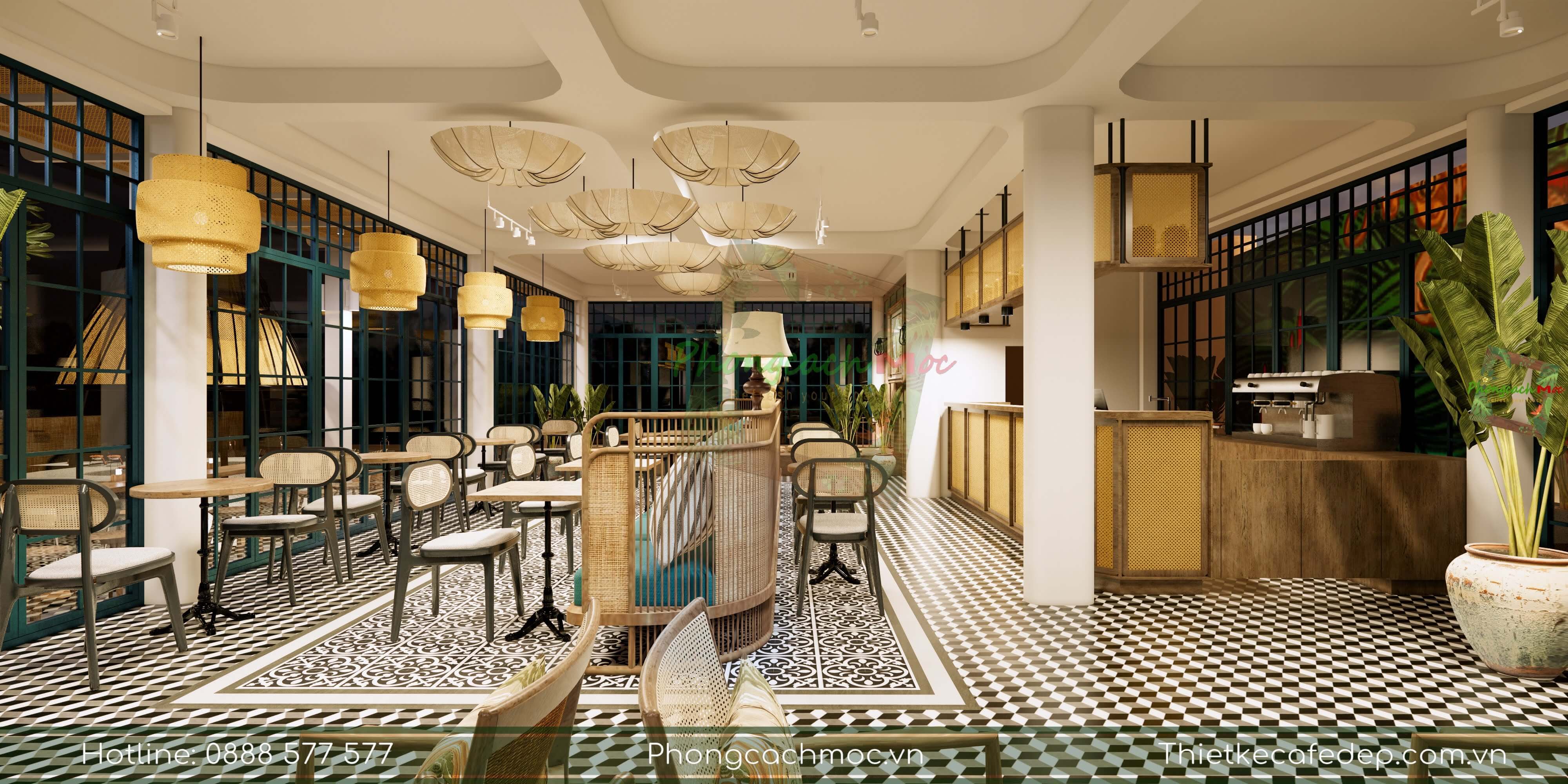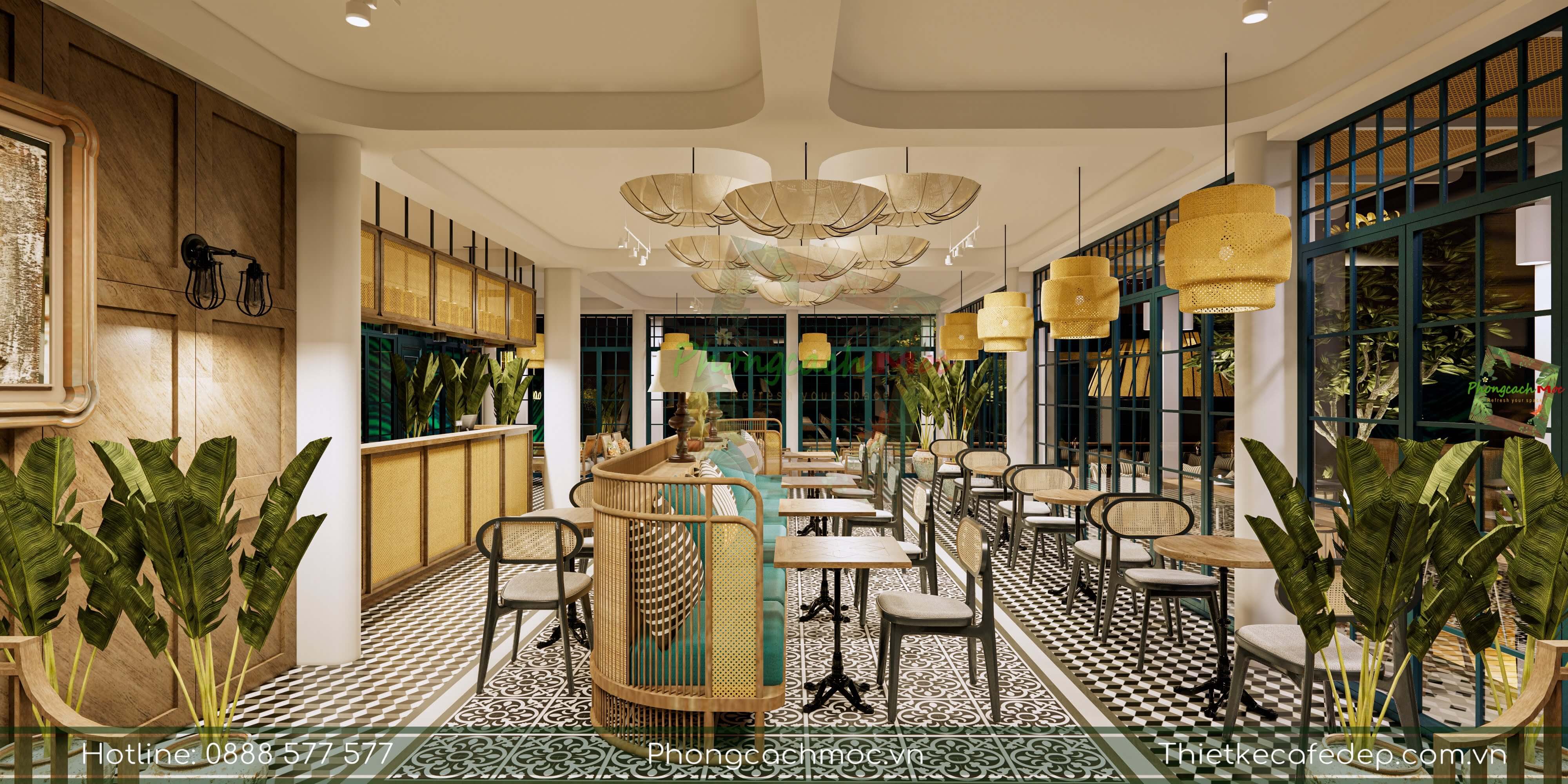 Chính vì vậy, PCM Design trình chiếu thiết kế theo nhiều diện tích khác nhau. Và cách thực hiện, bố trí không gian khu vực trong quán cafe, nhà hàng.